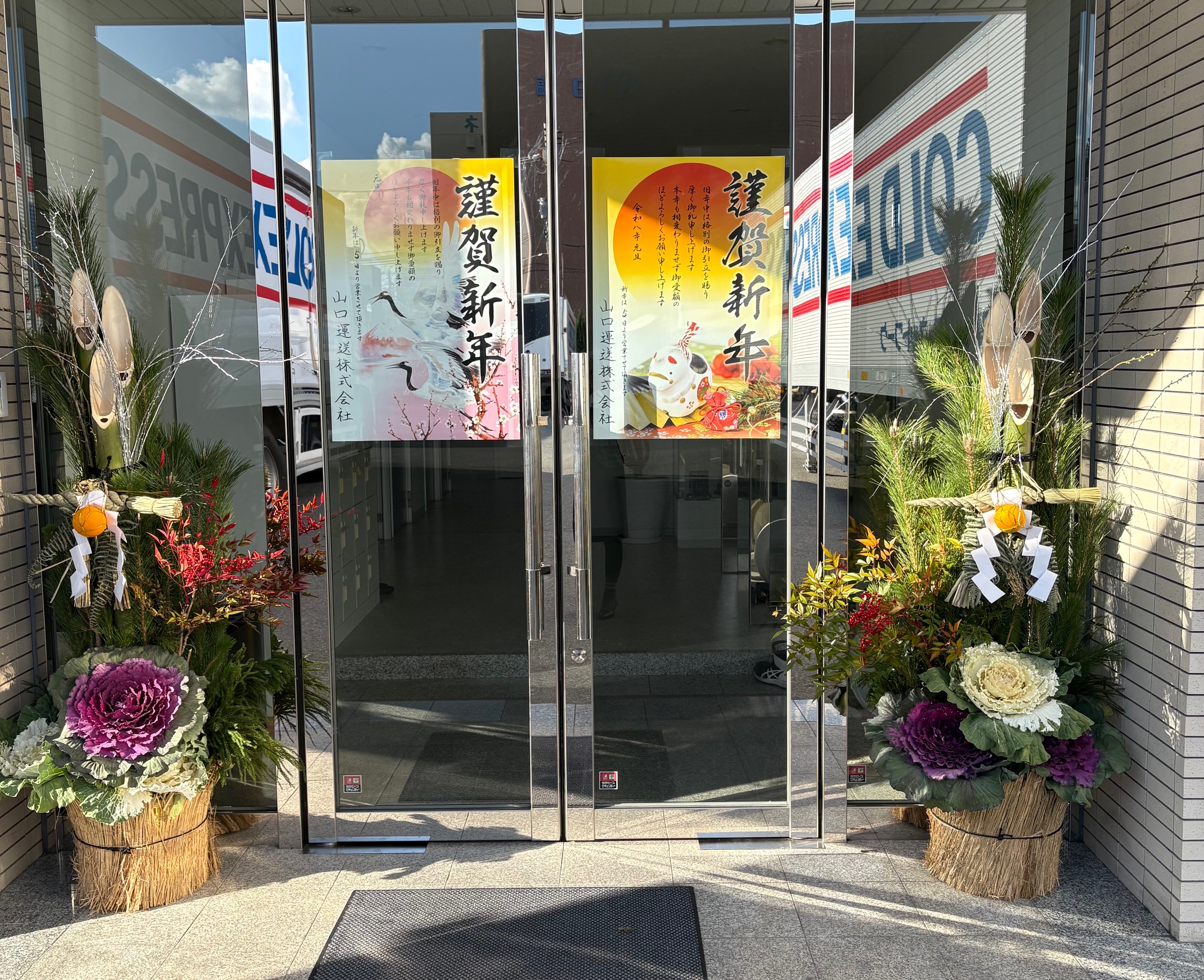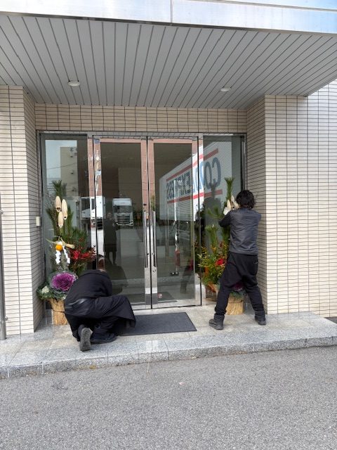 本社の大掃除も終了し、今年も本社入り口に門松を用意しました。